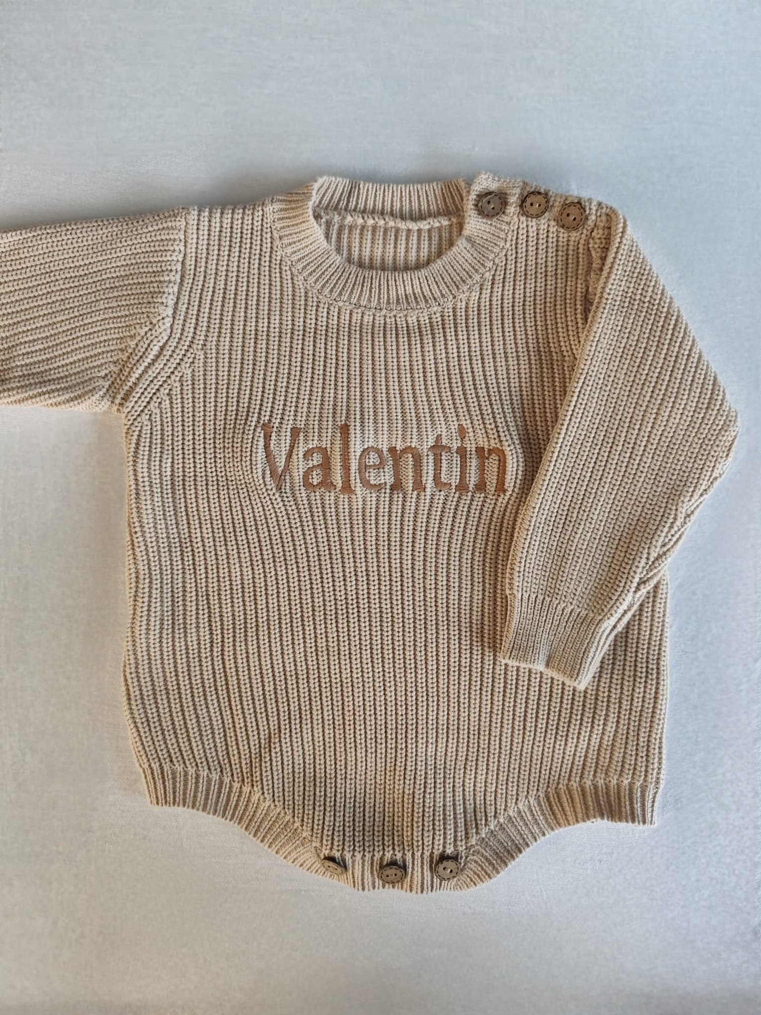 Liebevoll bestickter Baby Strickbody aus reiner Baumwolle - Bodysuit – weich, hautfreundlich & perfekt personalisiert für dein Baby