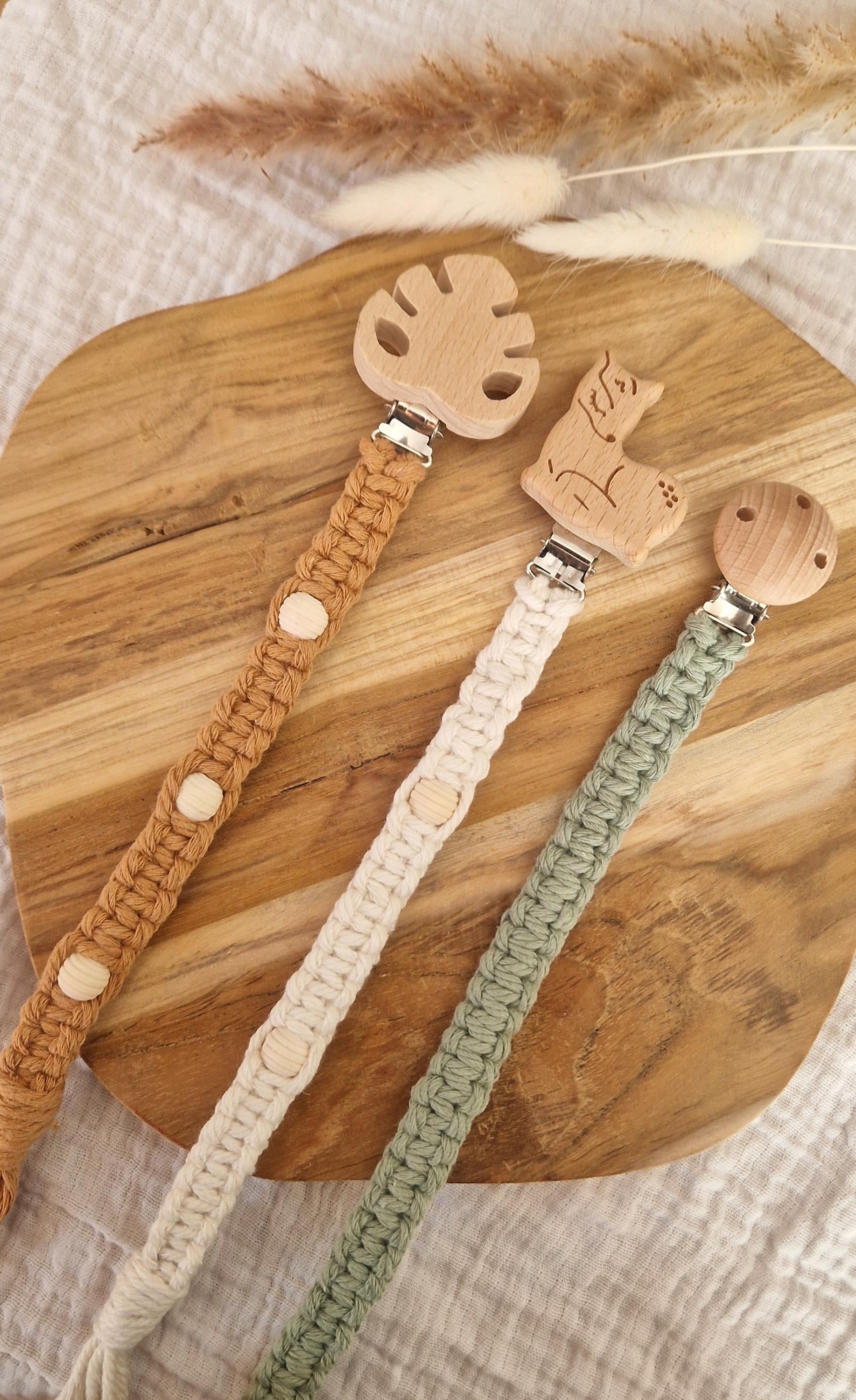 Diese Makramee-Schnullerkette ist ein liebevoll handgefertigtes Accessoire für Ihr Baby, praktisch, stylisch und absolut im Trend.