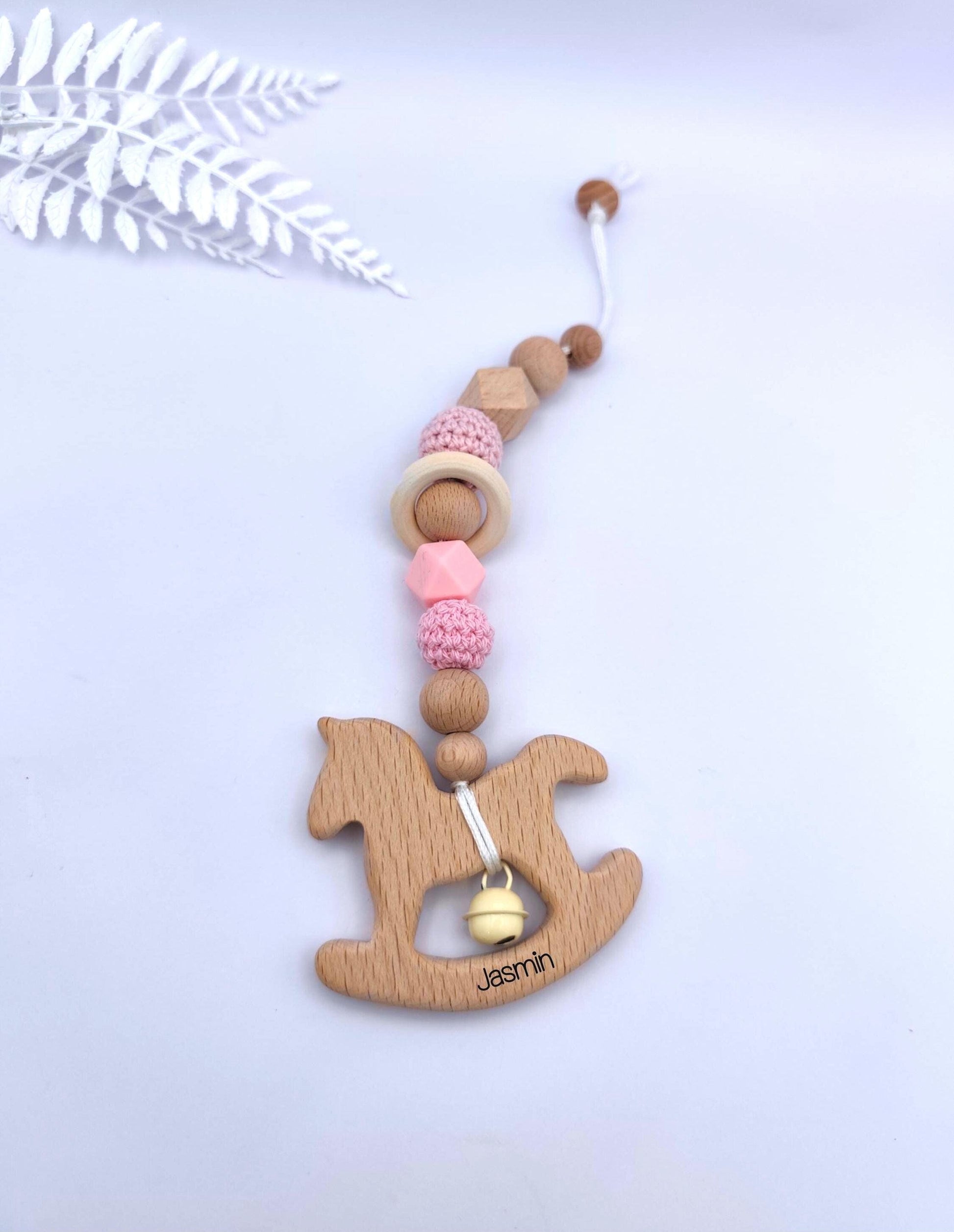 Maxi-Cosi Anhänger personalisiert mit Namen | Babysitzkette Holz & Häkelperlen | Babygeschenk Geburt Taufe