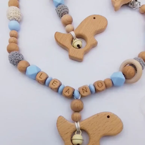 Personalisiertes 4-teiliges Baby-Geschenkset – Schnullerkette, Kinderwagenkette,...
