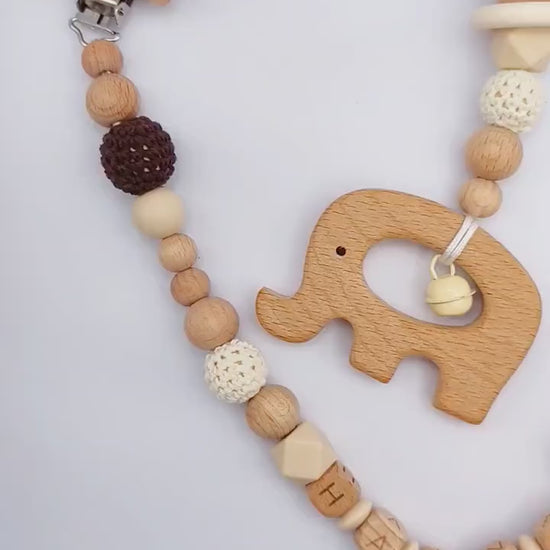 Beim Bestellen können Sie zwischen verschiedenen Motiven wie Mond, Panda oder Blume für die Schnullerkette und Kinderwagenkette wählen. Für den Greifling und den Maxi-Cosi-Anhänger stehen süße Holzdesigns wie Elefant oder Dinosaurier zur Auswahl. Die Personalisierung ist einfach – geben Sie den gewünschten Namen beim Checkout an, und Ihr individuelles Set wird mit großer Sorgfalt gefertigt. Sollte der Name länger als sechs Buchstaben sein, werden gegebenenfalls einige Perlen weggelassen, um das Design ausgewogen und sicher zu halten.