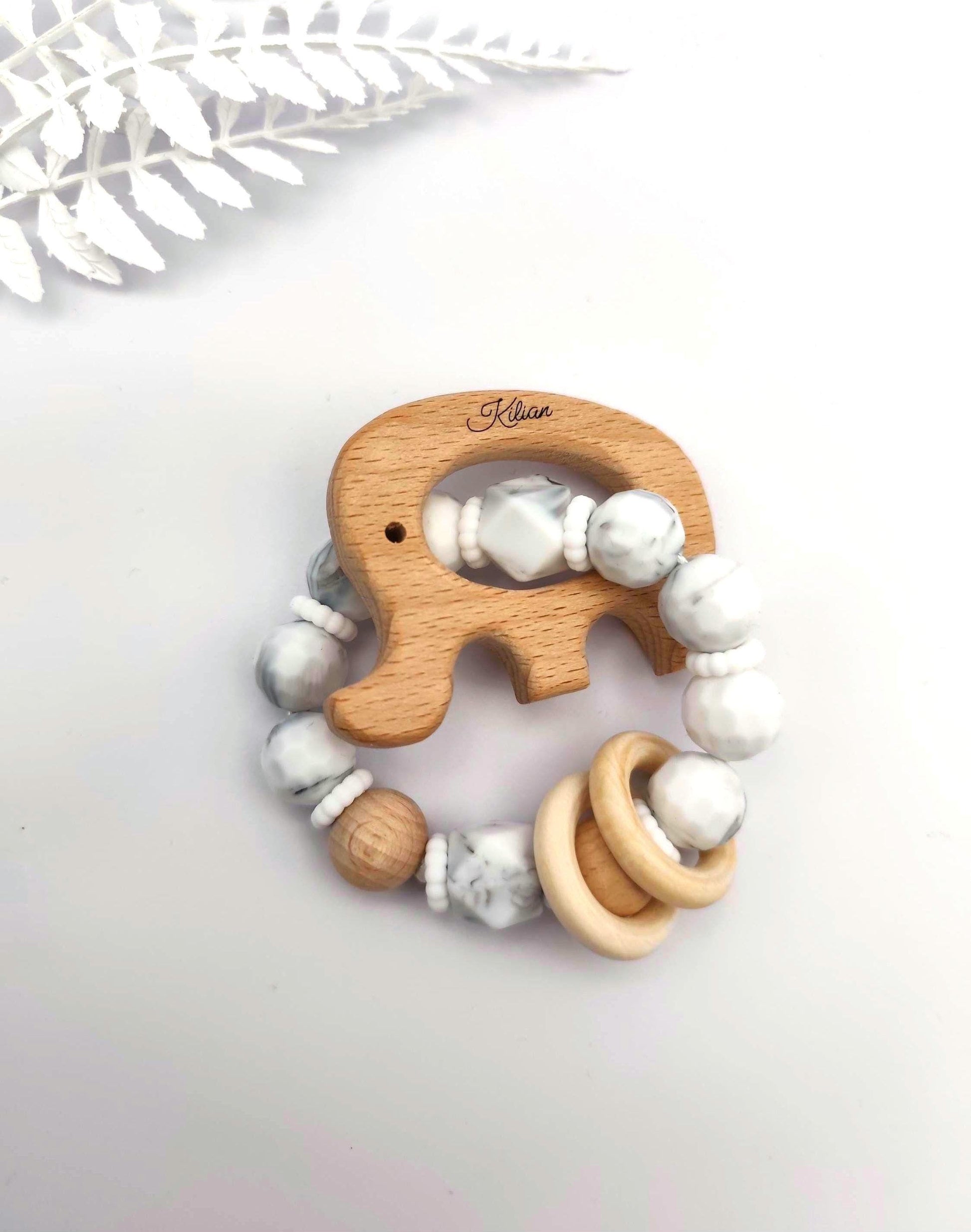 Personalisierter Greifling mit Gravur – Baby Greifling im Marmor-Design