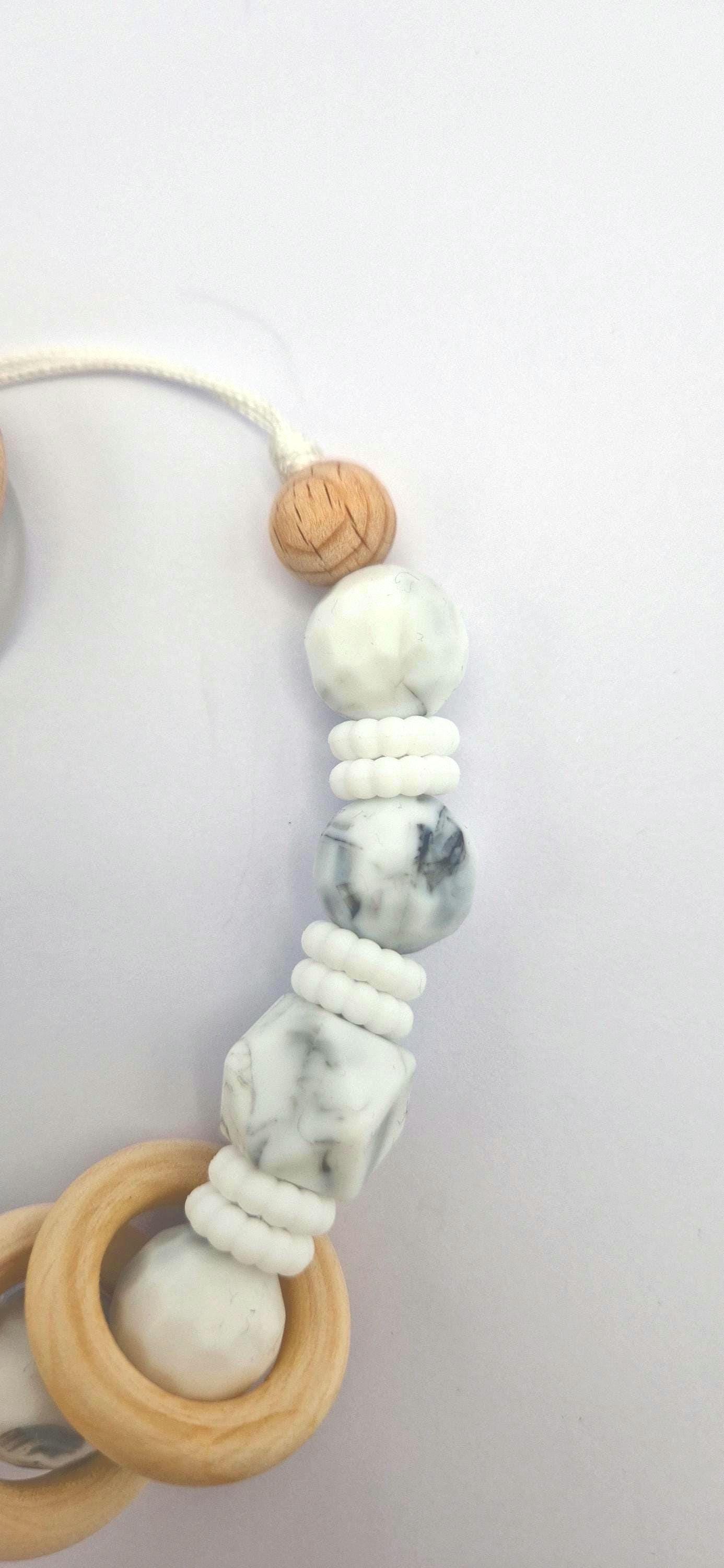 Diese handgefertigte Schnullerkette vereint stilvolle Eleganz mit praktischer Funktionalität. Marmorierte Premium-Silikonperlen, Naturholz und ein hochwertiger Clip machen sie zu einem zeitlosen Accessoire für Ihr Baby.