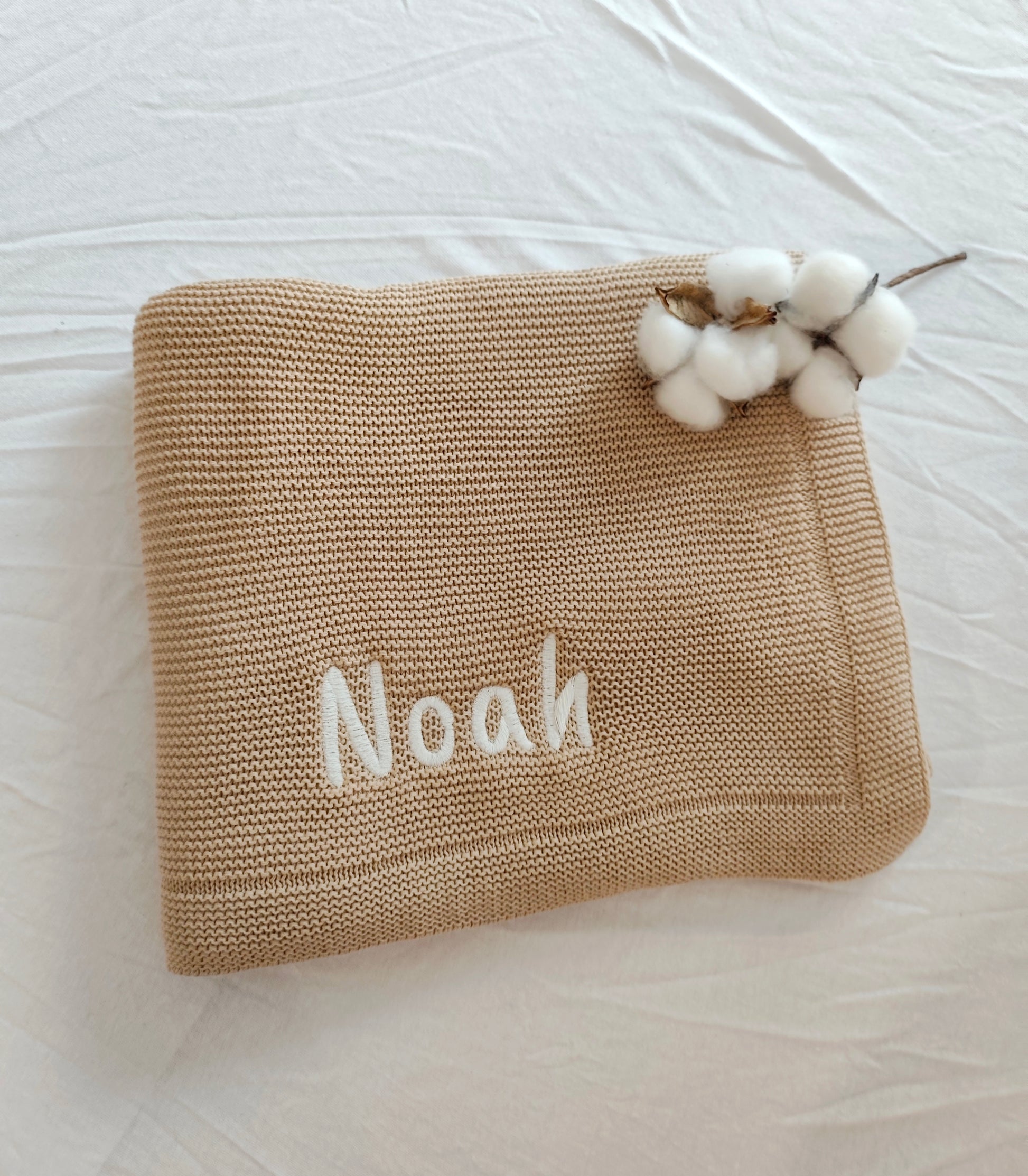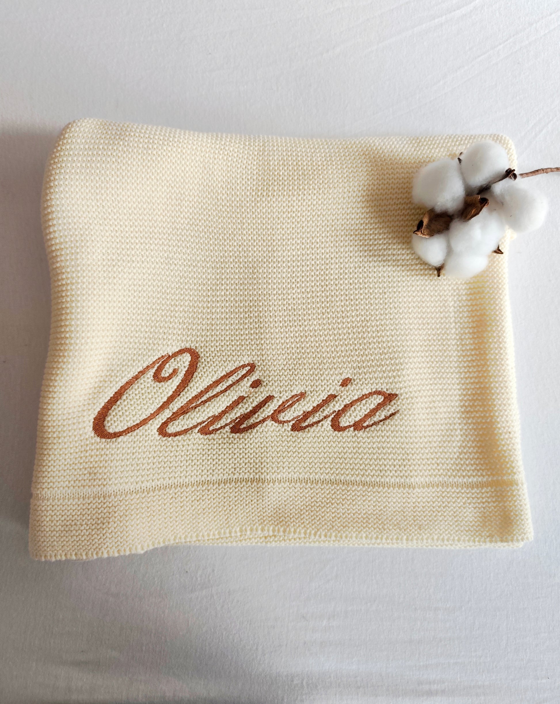Diese personalisierten Babydecken aus 100% weicher Baumwolle sind ein besonderes Highlight für jedes Neugeborene. Jede Decke wird mit viel Liebe individuell bestickt – z. B. mit dem Namen oder Geburtsdatum